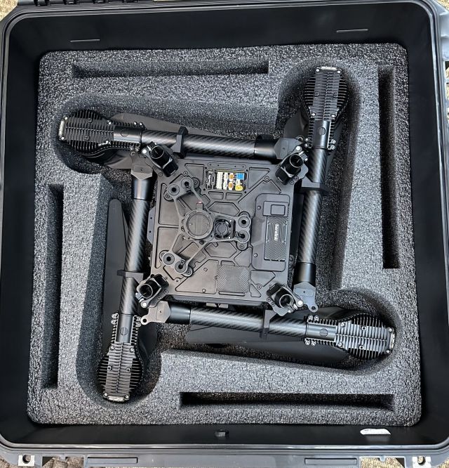 * [ ] Place (2)- 6s Lipo batteries on the top of the Aurora and strap them in place; when ready, plug the battery into their two receptacles on the back of the aircraft.