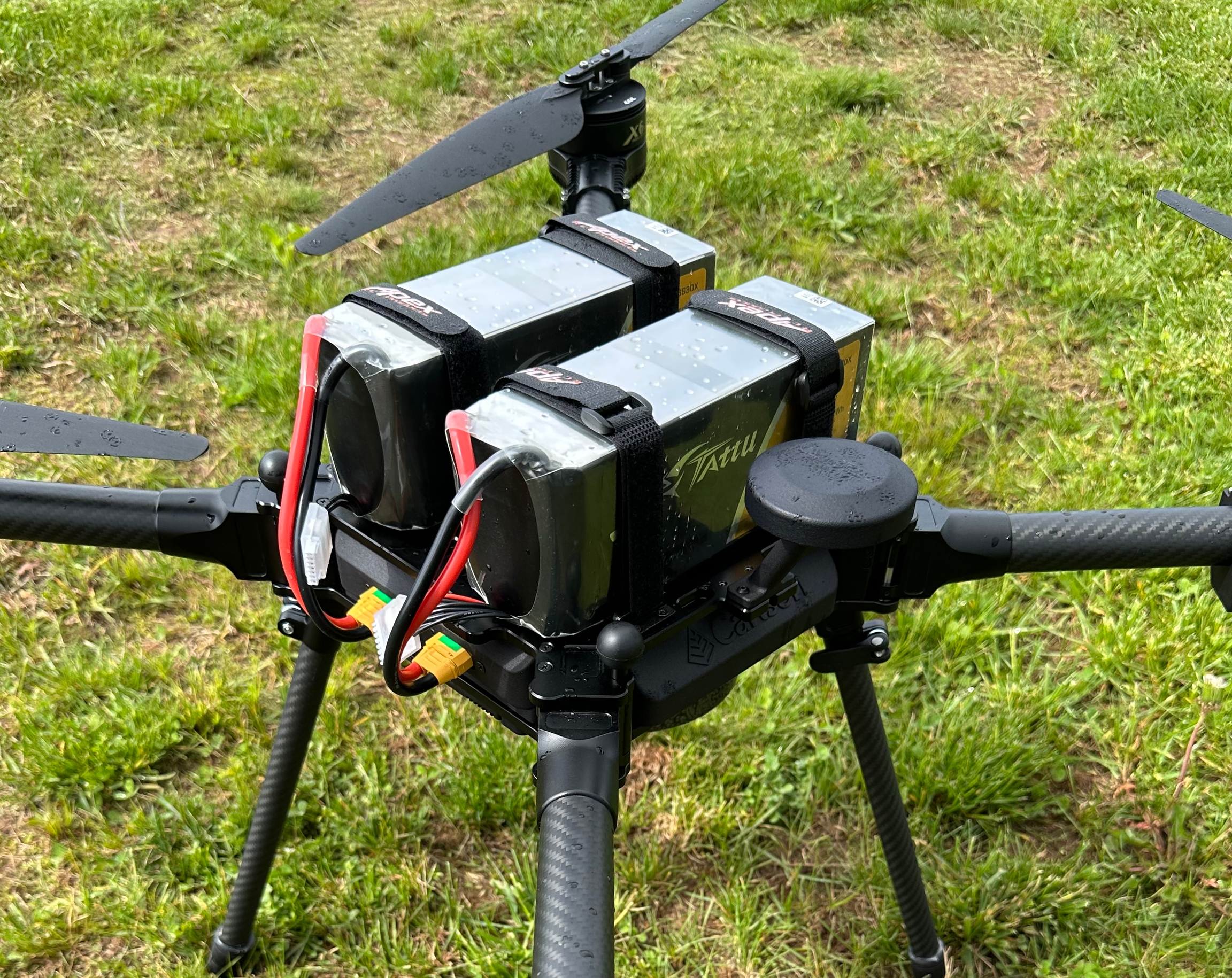 The connection of batteries results in full power for both the drone and the payload.