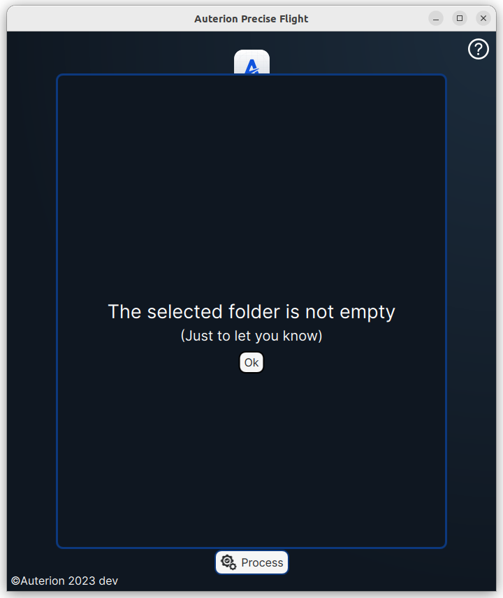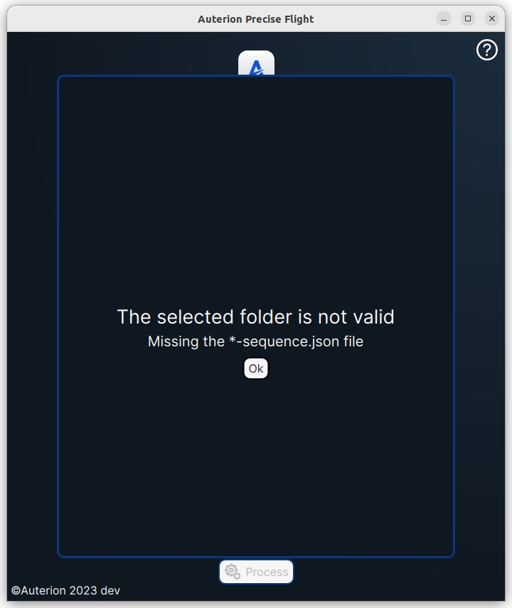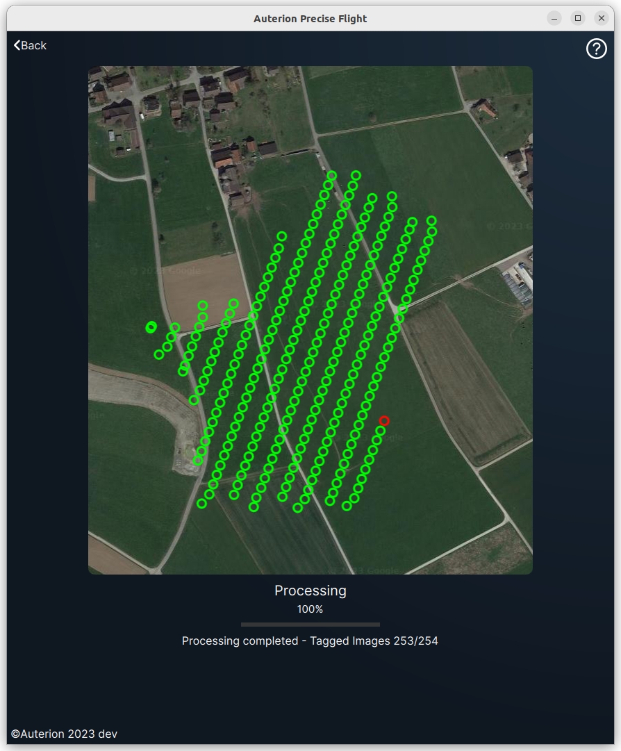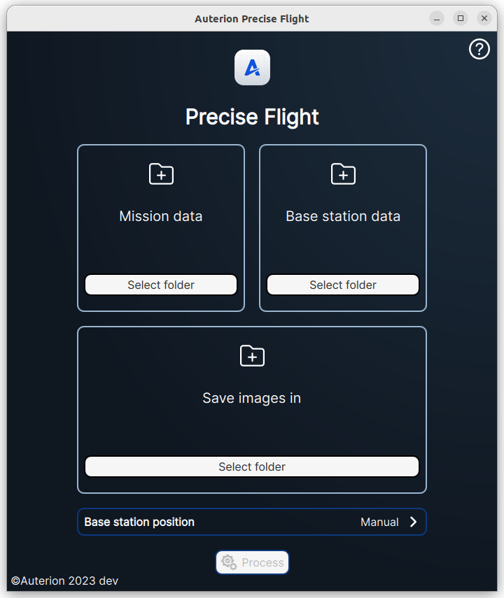 Preciseflight is a tool used for post-flight analysis that enables operators to run PPK on imagery collected with Powered-by-Auterion Vehicles. Users can select the required data folders from the main page.