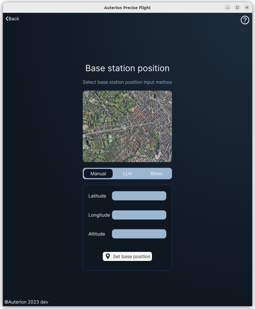As the name stands, you can insert the latitude, longitude, and altitude of the base station position. Then just click on Set base position to accept the position.