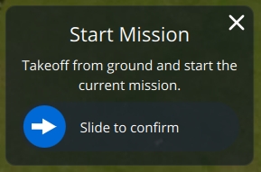 Auterion Mission Control will automatically prompt you to start, continue or resume a loaded mission, and you can also use the Action button at the bottom of the toolbar to choose any actions that are appropriate for the vehicle state (e.g. to start, pause, or continue a mission). You can also set any waypoint as the current target by selecting it on the map and then using the confirmation slider.