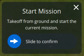 *Auterion Mission Control* will automatically prompt you to *start, continue or resume* a loaded mission, and you can also use the **Action** button at the bottom of the toolbar to choose any actions that are appropriate for the vehicle state (e.g. to start, pause, or continue a mission). You can also set any waypoint as the current target by selecting it on the map and then using the confirmation slider.